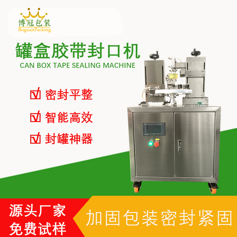 - 啟動與膠帶送料按下啟動按鈕后,設備動力系統(tǒng)驅動膠帶供給軸運轉,膠帶經導向輪輸送至罐盒開口邊緣,同時張力控制器啟動,精準調節(jié)膠帶張力,防止膠帶松弛或拉伸斷裂。