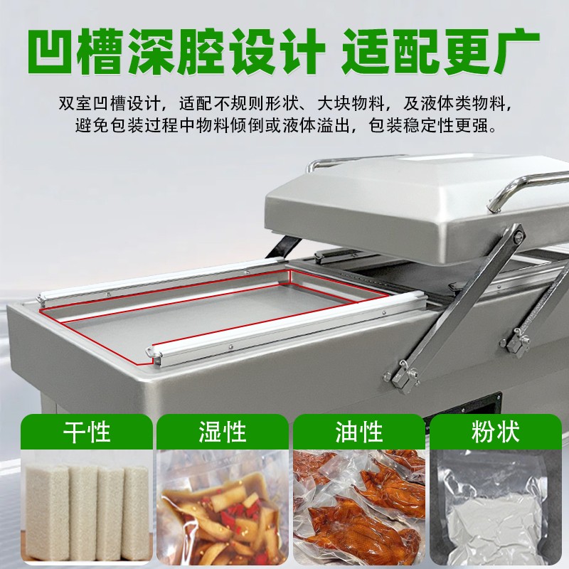 雙室真空包裝機可在真空包裝的基礎上,向包裝袋內充入氮氣、二氧化碳等惰性氣體或混合氣體,起到更好的防腐、防潮、防氧化等保質效果